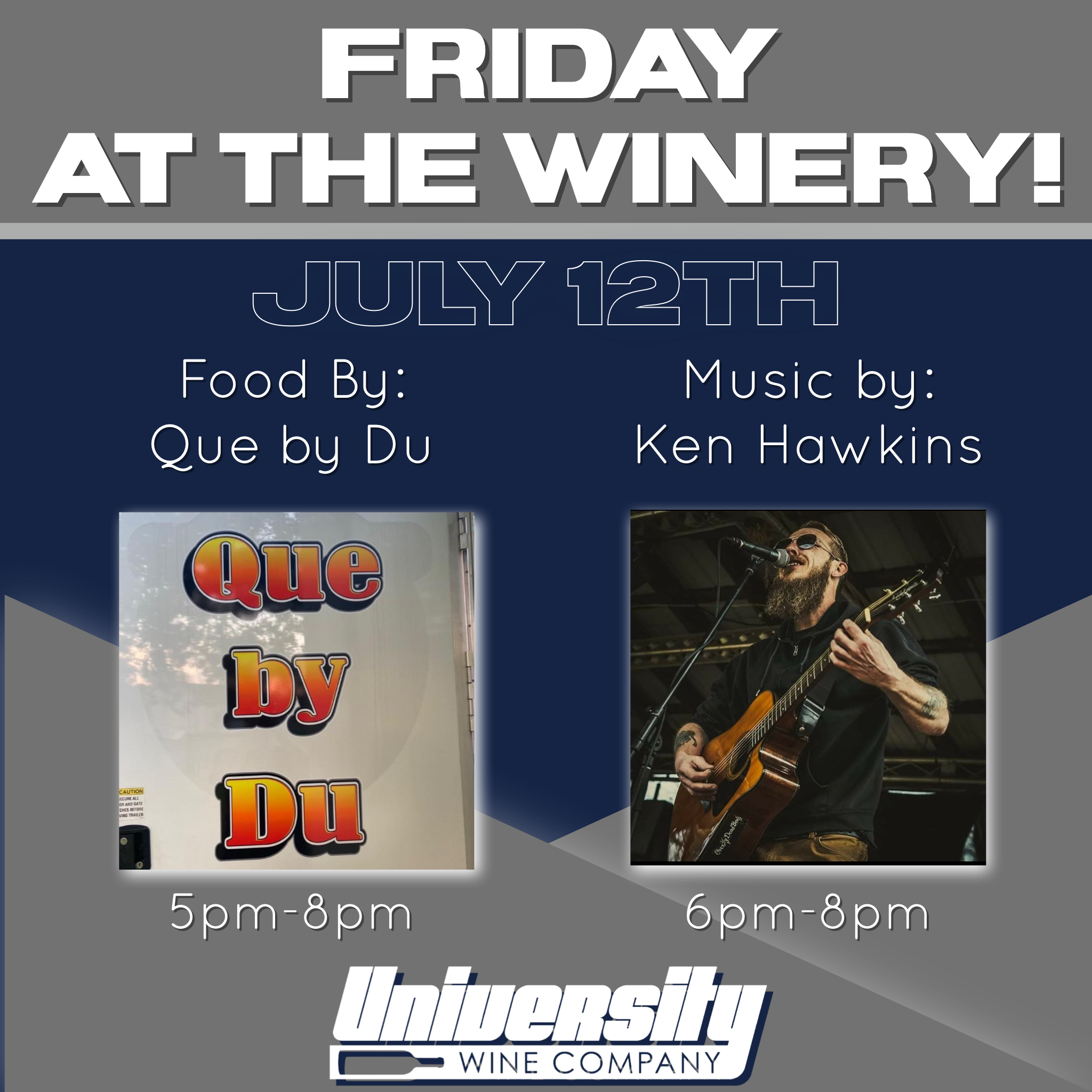 Friday Night Friday, July 12, 2024 5:00 PM 8:00 PM 17:00 20:00 University Wine Company 540 Misty Hill Drive State College, PA, 16801 United States (map) Google Calendar ICS