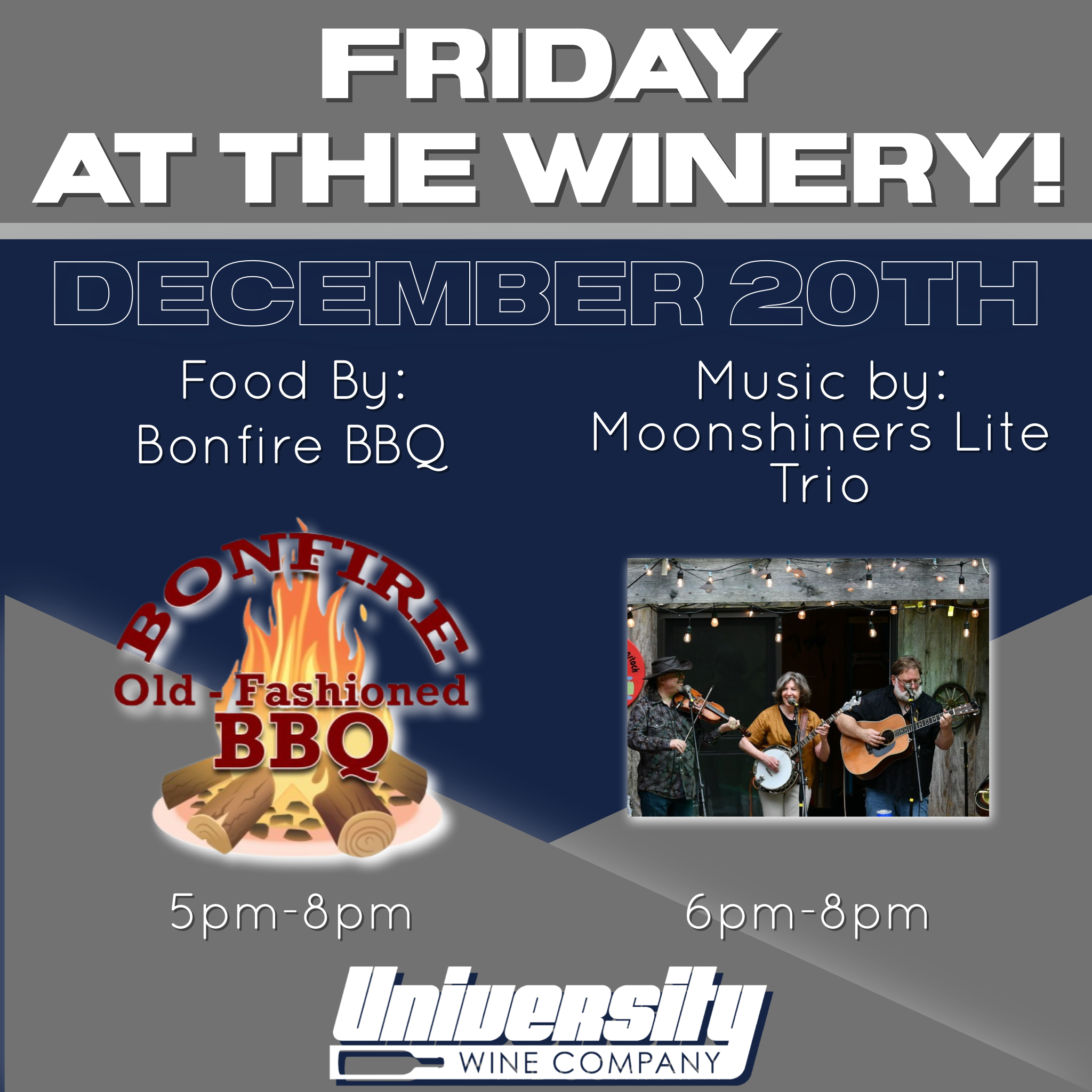 Friday Night Live Music Friday, December 20, 2024 5:00 PM 8:00 PM 17:00 20:00 University Wine Company 540 Misty Hill Drive State College, PA, 16801 United States (map) Google Calendar ICS