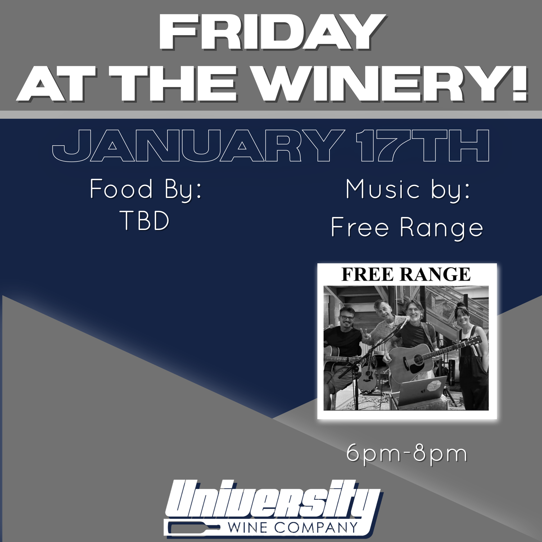Friday Night Live Music Friday, January 17, 2025 5:00 PM 8:00 PM 17:00 20:00 University Wine Company 540 Misty Hill Drive State College, PA, 16801 United States (map) Google Calendar ICS