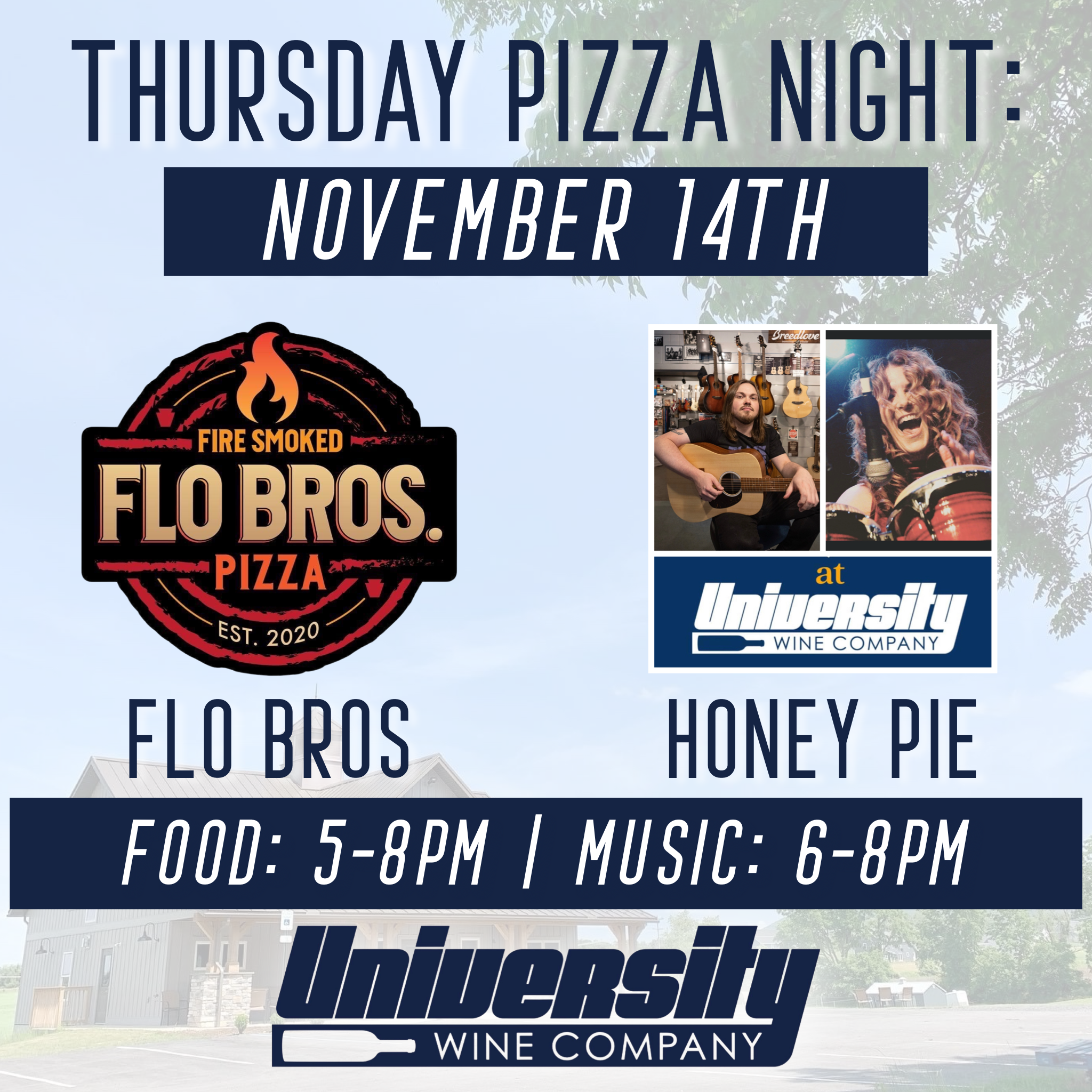 Thursday Pizza Night Thursday, November 14, 2024 5:00 PM 8:00 PM 17:00 20:00 University Wine Company 540 Misty Hill Drive State College, PA, 16801 United States (map) Google Calendar ICS