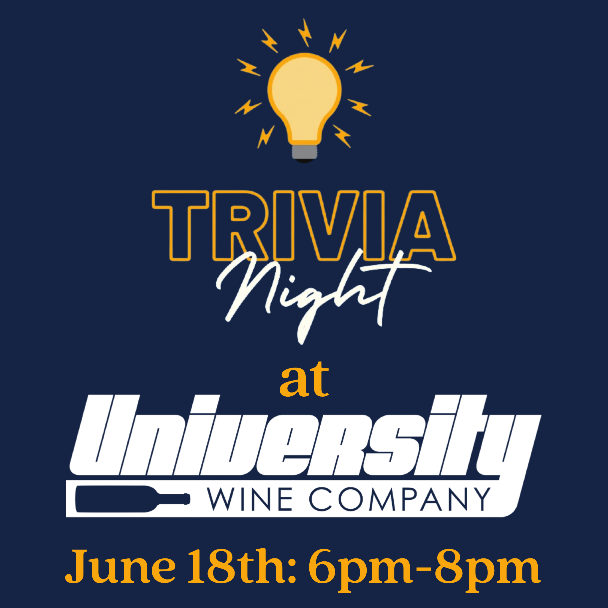 Trivia Night Tuesday, June 18, 2024 6:00 PM 8:00 PM 18:00 20:00 University Wine Company 540 Misty Hill Drive State College, PA, 16801 United States (map) Google Calendar ICS