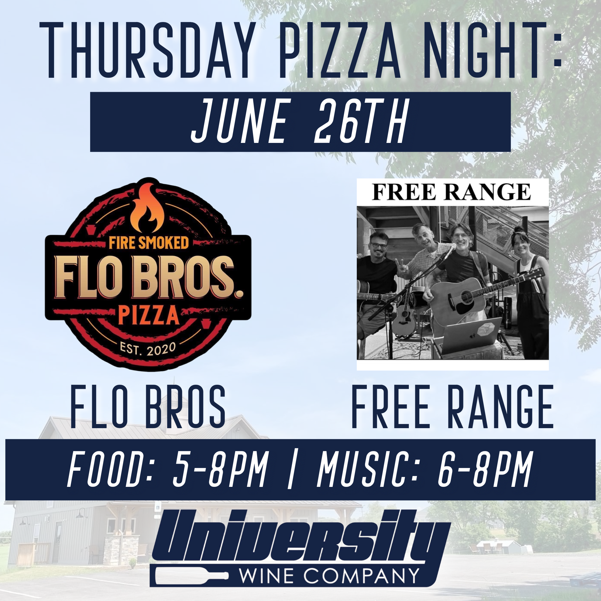 Thursday Pizza Night Thursday, June 26, 2025 5:00 PM 8:00 PM 17:00 20:00 University Wine Company 540 Misty Hill Drive State College, PA, 16801 United States (map) Google Calendar ICS