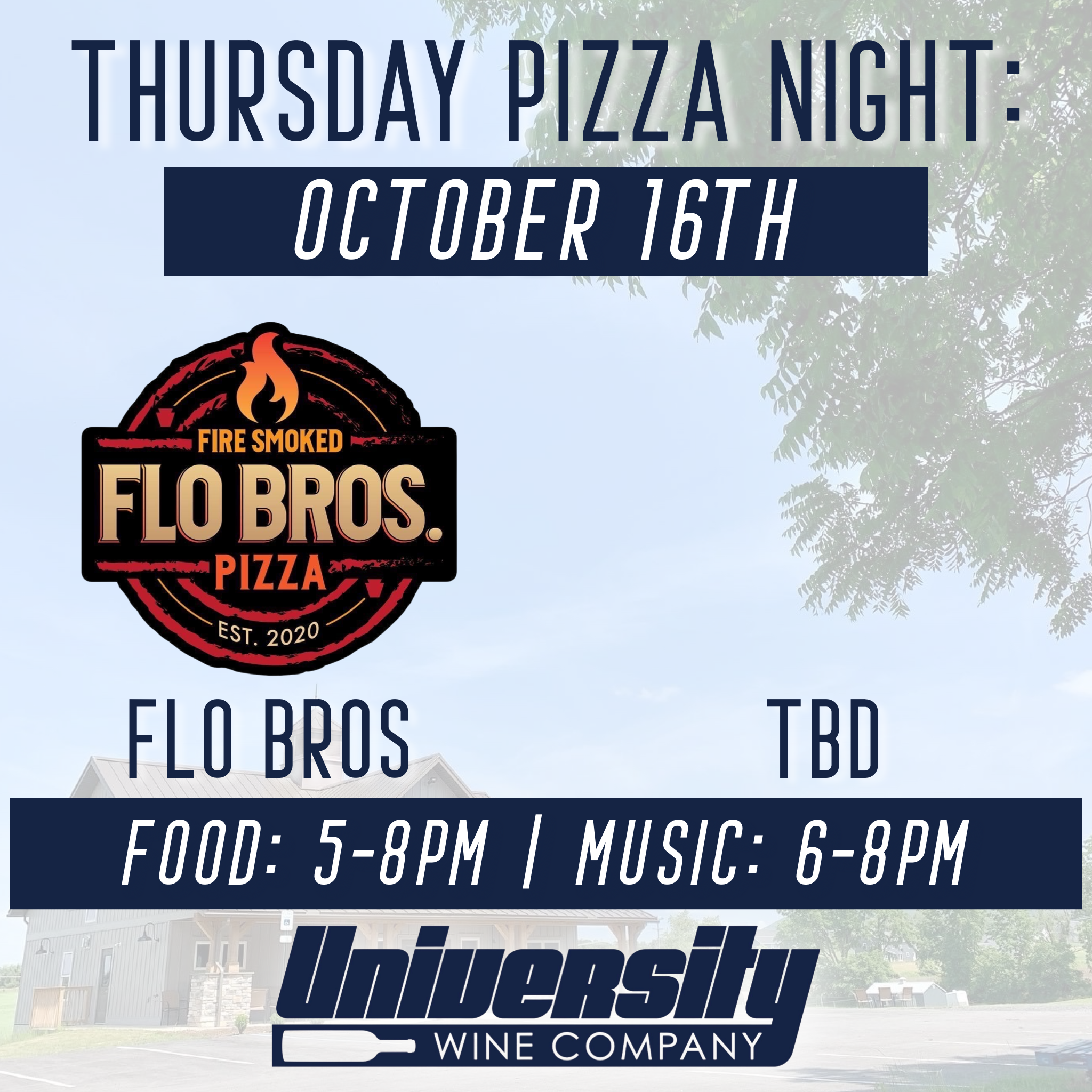 Thursday Pizza Night Thursday, October 16, 2025 5:00 PM 8:00 PM 17:00 20:00 University Wine Company 540 Misty Hill Drive State College, PA, 16801 United States (map) Google Calendar ICS