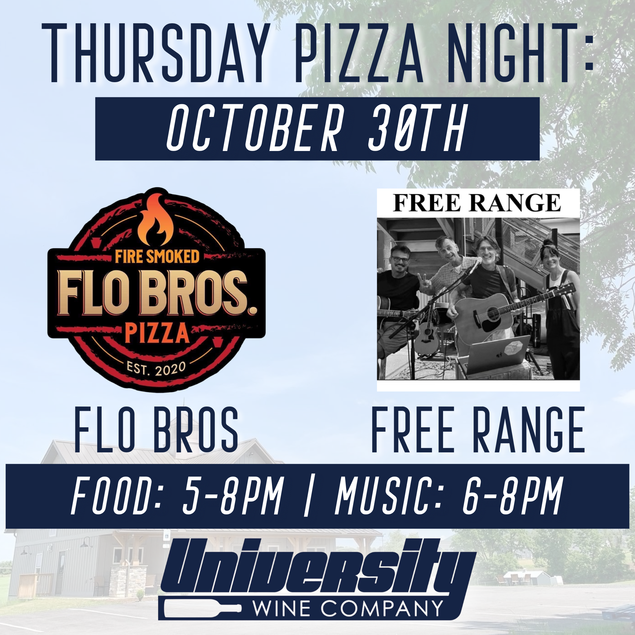 Thursday Pizza Night Thursday, October 30, 2025 5:00 PM 8:00 PM 17:00 20:00 University Wine Company 540 Misty Hill Drive State College, PA, 16801 United States (map) Google Calendar ICS